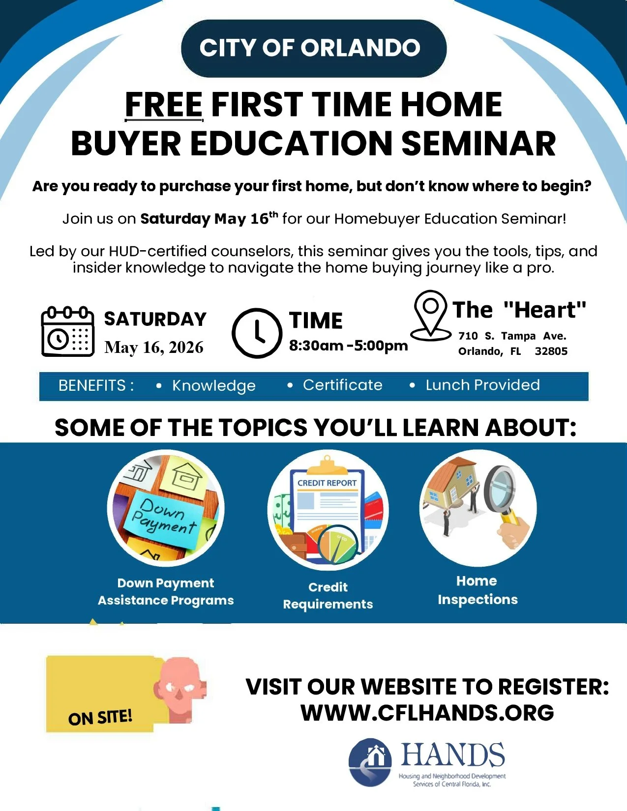 Join HANDS of Central Florida, Saturday, April 4 at the Heart of West Lakes for a Homebuyer Education Seminar designed to help you take the next confident step toward homeownership.